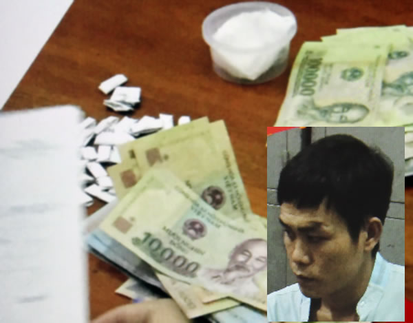 Chiều 11-5, các trinh sát phát hiện Vũ từ trong nhà đi ra. Nhận định khả năng cao đối tượng đi giao hàng cho con nghiện nên bố trí lực lượng sẵn sàng "đón". Do địa bàn đông dân cư, nhà đối tượng lại nằm trên tuyến đường có nhiều người qua lại nên việc phá án cần hành động nhanh, bất ngờ. Đồng nhất ý chí, quyết tâm cao, khi Vũ vừa bước ra khỏi cổng thì CA ập đến. Có tật giật mình, Vũ vùng tháo chạy nhưng đã bị các trinh sát khống chế, bắt giữ. Tang vật thu tại hiện trường là 48 gói giấy bên trong chứa bột màu trắng được bỏ trong hộp đựng kem Flan. Khai thác nóng, Vũ bước đầu khai nhận chất bột trắng là heroin.