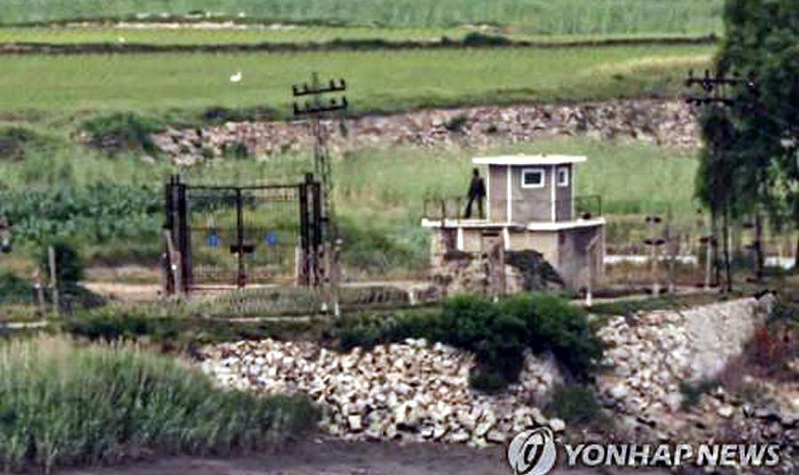 Hình ảnh được chụp vào ngày 19-6, cho thấy an ninh thắt chặt tại một đồn bảo vệ biên giới của Triều Tiên tại huyện Gaepung, tỉnh Bắc HwangHae. Ảnh: Yonhap |