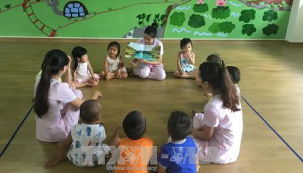 Các bé thích thú với giờ đọc truyện. |