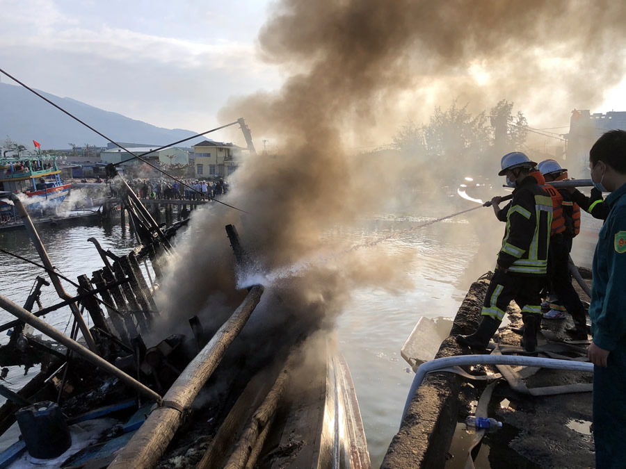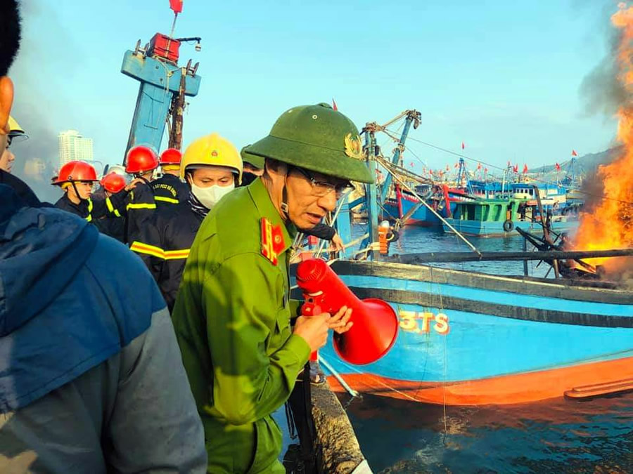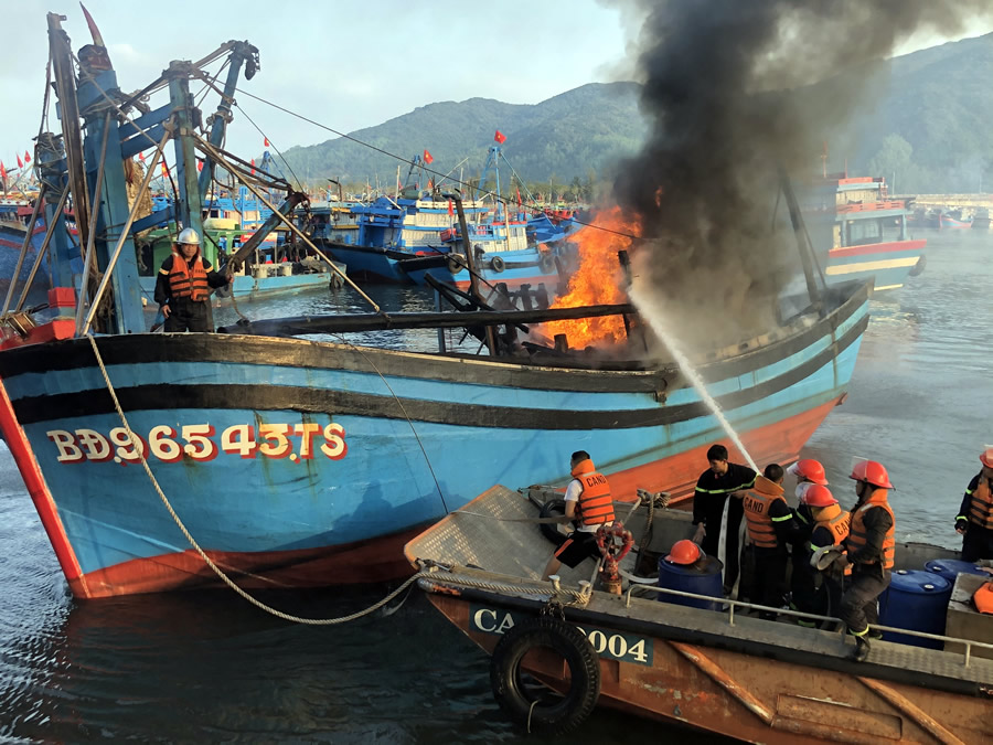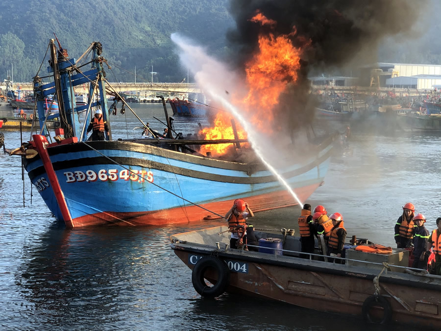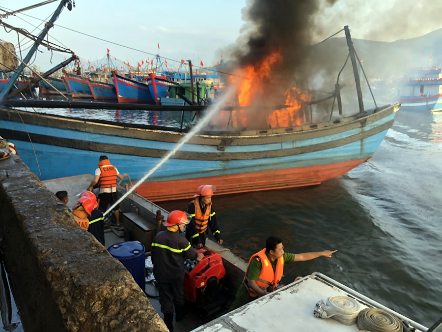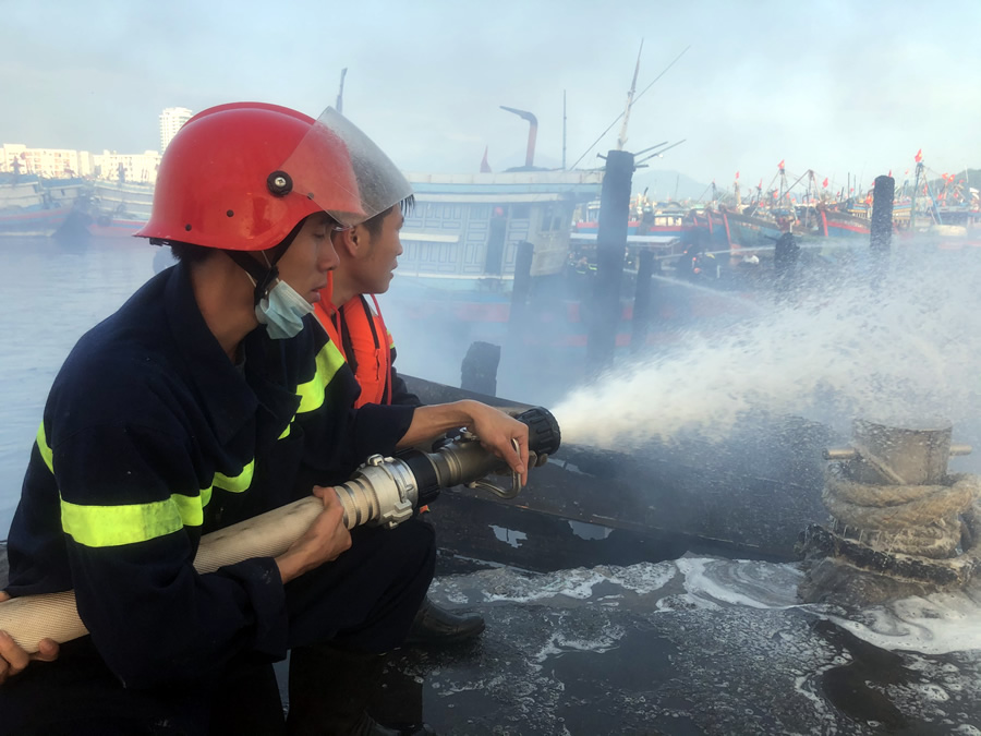 Công tác chữa cháy gặp rất nhiều khó khăn do vị trí 3 con thuyền nằm giữa âu thuyền nên không thể dập tắt được đám cháy. Vì vậy, để tránh cháy lan, lực lượng phòng cháy chữa cháy đã sử dụng tàu ngư dân di chuyển lần lượt các tàu bị cháy vào gần bờ để chữa cháy. Đến khoảng 8 giờ 32 phút. Đám cháy cơ bản được khống chế.