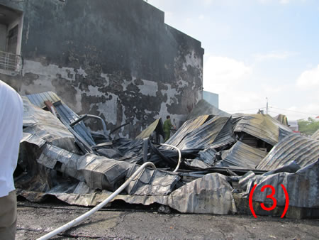 (1)- Đám cháy được dập tắt hoàn toàn, lực lượng chức năng tiến hành khám nghiệm hiện trường. (2)- Ngôi nhà liền kề của bà Nguyễn Thị Nghỉ cũng bị ảnh hưởng từ vụ cháy. (3)- Hiện trường vụ cháy. Ảnh: P.T |