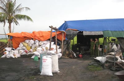 Tiếp tục xác minh, 16 giờ cùng ngày, lực lượng Cảnh sát môi trường CA tỉnh Quảng Ngãi đã tiến hành kiểm tra và bắt quả tang một cơ sở chế biến mỡ động vật không có giấy phép đảm bảo VSATTP tại thôn 1, xã Nghĩa Dõng, TP Quảng Ngãi (cách nơi xe tải gom hàng gần 2km) do bà Lê Thị Kim Tiến (trú xã Nghĩa Dõng) làm chủ. Tại đây có 70 bao tải mỡ thành phẩm chưa kịp tiêu thụ. Cơ sở này của bà Tiến không có giấy phép đảm bảo VSATTP, sản xuất chui.