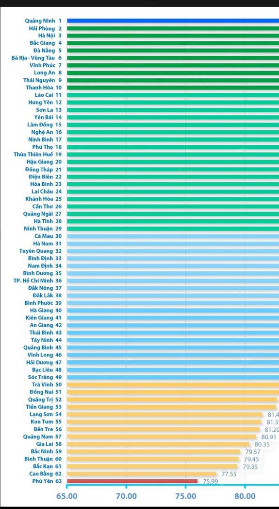 - Chỉ số thành phần Cải cách thể chế xếp 55/63 tỉnh, thành phố;