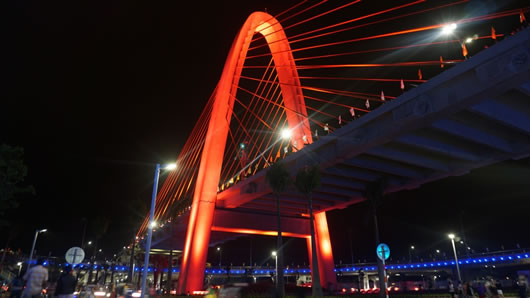 (Cadn.com.vn) - Từ khi Nhà đầu tư Trung Nam, đơn vị thi công Nút giao thông khác mức cầu vượt Ngã Ba Huế thông báo từ ngày 24 đến 26-3-2015 sẽ tổ chức cho người đi bộ tham quan, chiêm ngưỡng công trình kiến trúc cầu vượt này trước khi được đưa vào khánh thành và thông xe vào ngày 29-3-2015, đúng vào dịp kỷ niệm 40 năm ngày giải phóng TP Đà Nẵng, người dân đã háo hức chờ đợi. Điều đó đã được thể hiện ngay trong ngày đầu tiên 24-3-2015. Hàng ngàn người dân từ khắp nơi đã đổ về để được ngắm nhìn, chiêm ngưỡng công trình có ý nghĩa này.