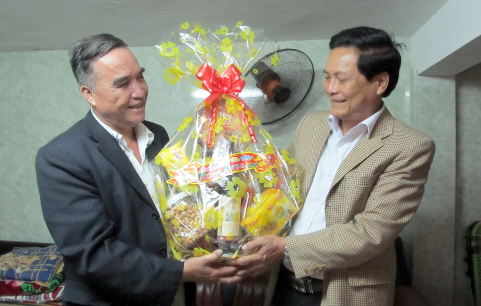 Ông Dương Thành Thị- nguyên Đại đội trưởng Đại Đội TNXP Hòa Vang ngày ấy- đi thăm đồng đội từng chung lưng đấu cật ở chiến trường K. Ảnh: P.T |