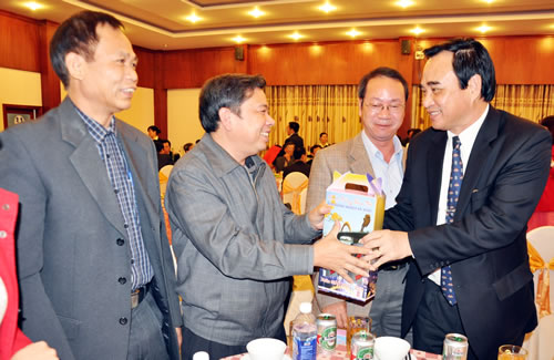 (Cadn.com.vn) - Chiều 23-1, lãnh đạo TP Đà Nẵng gồm các đồng chí Trần Thọ, Bí thư Thành ủy, Chủ tịch HĐND; Võ Công Trí, Phó Bí thư Thường trực Thành ủy; Văn Hữu Chiến, Chủ tịch UBND; Võ Duy Khương, Phó Chủ tịch Thường trực UBND; Nguyễn Mạnh Hùng, Chủ tịch UBMTTQ Việt Nam TP Đà Nẵng cùng các đồng chí trong Ban Thường vụ Thành ủy, lãnh đạo các sở, ban ngành, quận huyện đã có buổi gặp mặt hơn 200 doanh nghiệp (DN) hoạt động trên địa bàn Đà Nẵng nhân dịp Tết Nguyên đán Giáp Ngọ 2014 và “Năm doanh nghiệp Đà Nẵng 2014”.