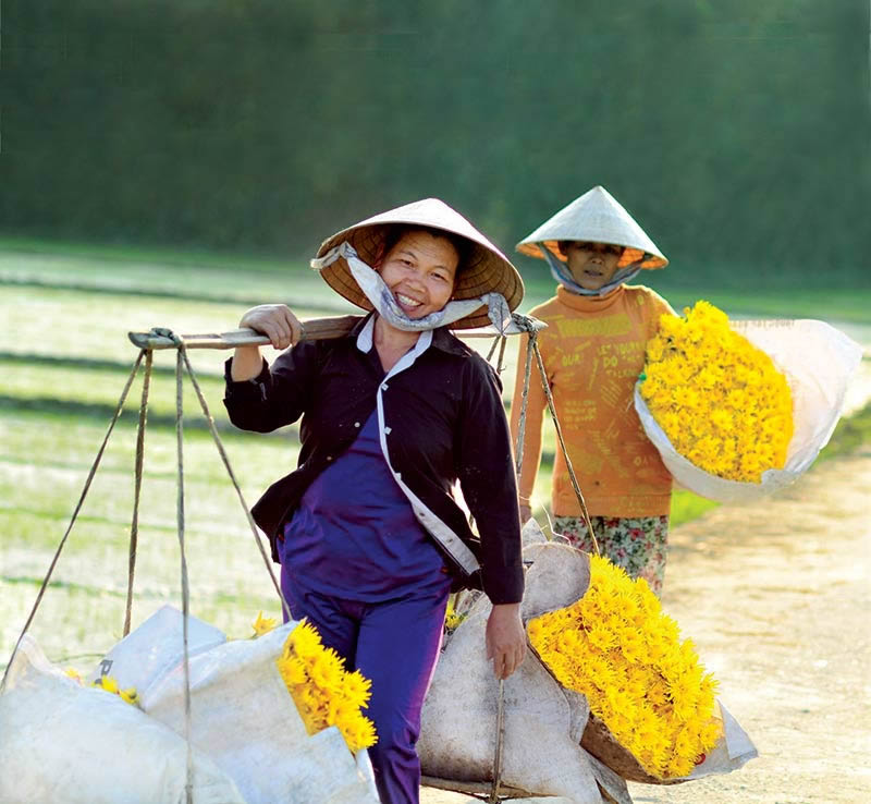 Mùa xuân đi chợ Tết, vốn là nếp sinh hoạt thường kỳ của người dân đất Việt. Chợ Tết là bức tranh thu nhỏ của đời sống nông thôn, nét sinh hoạt văn hóa cộng đồng mà có lẽ không có vùng miền nào ở nước ta không có. Từ lâu, chợ Tết đã xuất hiện trong nhiều trang thơ, mỗi thi nhân bằng những rung ngân của lòng mình, dưới những góc nhìn khác nhau đã tái hiện không gian sinh hoạt đậm đà bản sắc dân tộc ấy. Đặc biệt ở vùng nông thôn xưa, đi chợ Tết đã trở thành một thú vui, một niềm háo hức của các chị, các cô. Trong những câu ca hò vè, ca dao thuở trước, ta vẫn nghe một giai điệu mộc mạc vút bay lên như nỗi phấn chấn của cô gái quê khi đến chợ: “Mùa xuân em đi chợ hạ/ Mua cá thu về, chợ hãy còn đông”. Nét duyên dáng của câu ca là sự xuất hiện bốn mùa trong năm gói gọn chỉ trong 14 chữ, nhưng đằng sau câu từ ấy, người bình dân đã gợi cả không khí đông vui, rộn ràng của một nếp quê không dễ xóa nhòa.