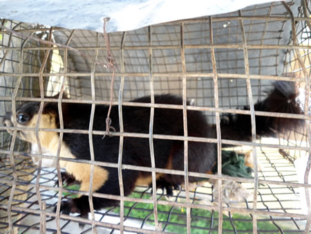 (Cadn.com.vn) - Con chồn dài gần 1m, phần thân dưới màu vàng tía, thân trên màu đen tuyền, đuôi dài 0,5m rất đẹp, tứ chi có móng vuốt nhọn, ăn tất cả các loại trái cây (ảnh). Con chồn được anh Trần Khánh (trú Q. Ngũ Hành Sơn, Đà Nẵng) nuôi nhốt trong lồng sắt nhỏ, anh Khánh cho biết, chồn có thể bay từ cây này sang cây khác nhờ lớp màng da ở dưới tứ chi.