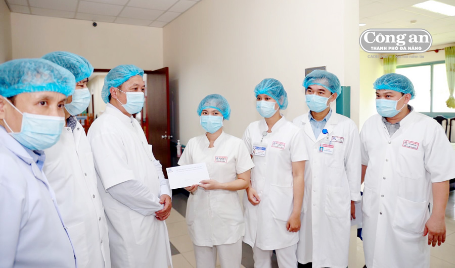 Thứ trưởng Bộ Y tế Nguyễn Trường Sơn trao quà, động viên các bác sĩ, điều dưỡng đang điều trị cho các BN nhiễm Covid-19 tại BVT.Ư Huế cơ sở 2. |