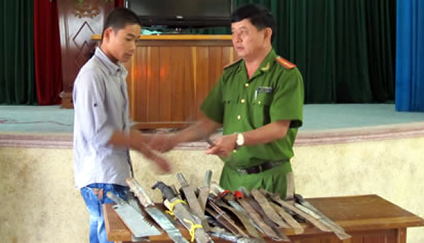 Người dân Đà Nẵng tự nguyện giao nộp vũ khí tự chế cho lực lượng Công an. |