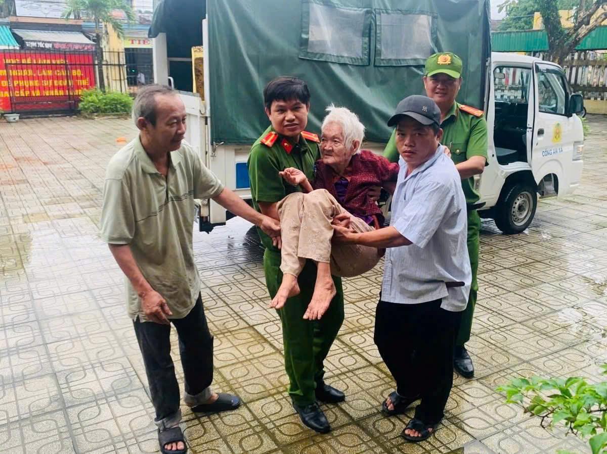 Công an tỉnh Quảng Ngãi xuống tận ngõ, giúp dân di dời tránh bão số 13