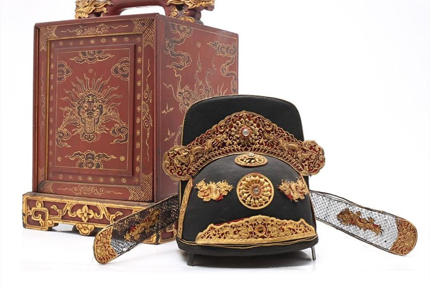 Mũ quan triều Nguyễn có niên đại cuối thế kỷ XIX, đầu thế kỷ XX, đi kèm cả hộp đựng mũ bằng gỗ sơn son thếp vàng cũng còn nguyên vẹn. Theo các nhà nghiên cứu, phục chế và mua bán cổ vật triều Nguyễn ở Việt Nam, đây là chiếc mũ quan hàm chánh nhất phẩm còn nguyên vẹn và đẹp nhất từ trước tới nay mà họ thấy.