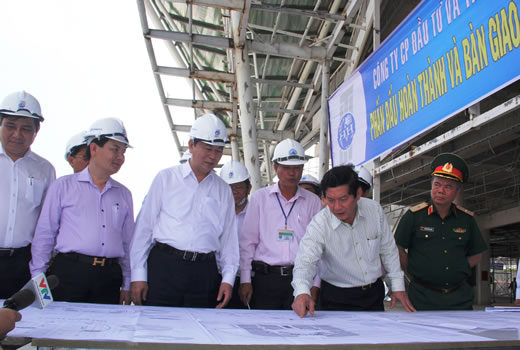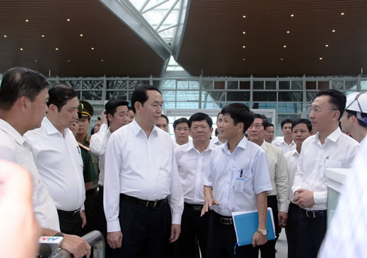 | Chủ tịch nước nghe báo cáo tiến độ công trình Nhà ga mới sân bay quốc tế Đà Nẵng. Nhà ga mới này dự kiến sẽ hoàn thành vào 19-5-2017. Phòng khách VIP tại khu vực nhà ga quốc tế mới để phục vụ công tác đón, tiễn các đoàn cấp cao APEC đã khởi công xây dựng ngày 23-02-2017, dự kiến hoàn thành và sẵn sàng phục vụ vào ngày 8-8-2017. |