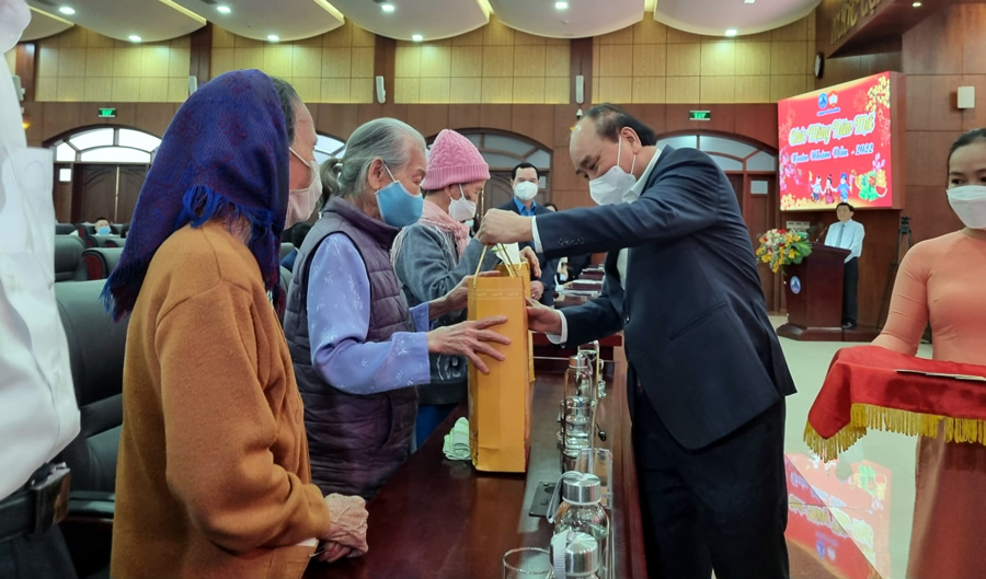 Trước thềm Tết Nguyên đán Nhâm Dần 2022, ngày 16-1, Ủy viên Bộ Chính trị, Chủ tịch nước Nguyễn Xuân Phúc đã đến thăm, tặng quà tại thành phố Đà Nẵng.