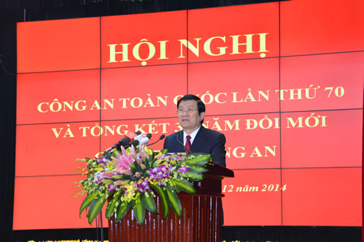 Chủ tịch nước Trương Tấn Sang đến dự và có bài phát biểu quan trọng tại Hội nghị Công an toàn quốc lần thứ 70