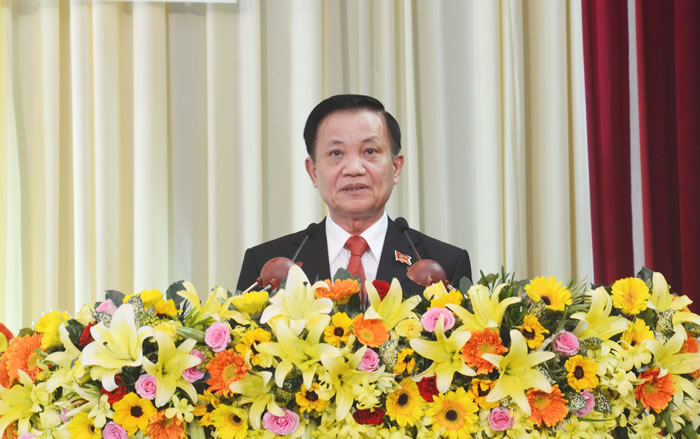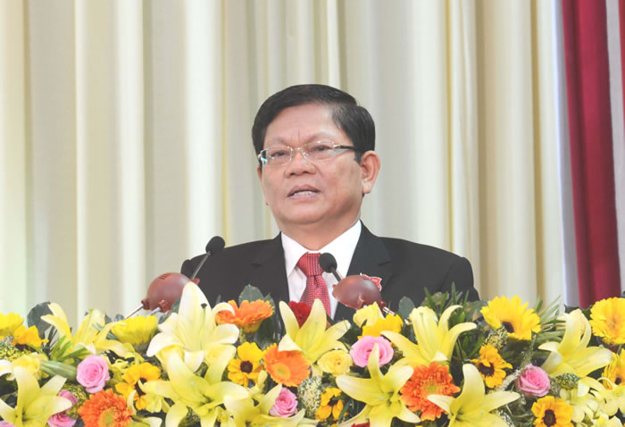 Phó bí thư Thường trực Thành ủy Võ Công Trí trình bày Báo cáo chính trị. |