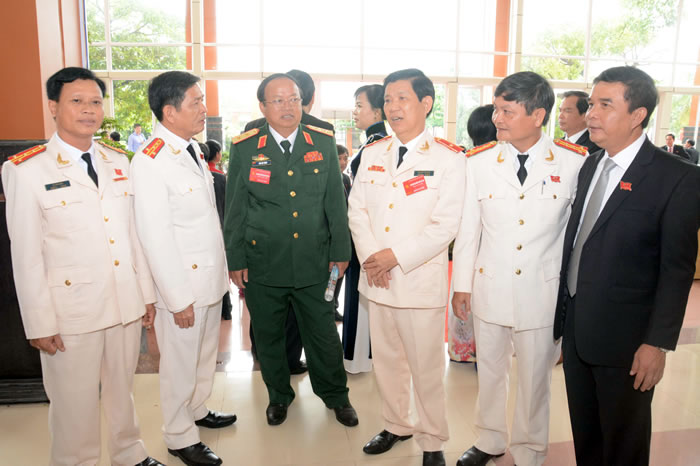 Các đại biểu thuộc khối lực lượng vũ trang thảo luận bên lề Đại hội. |