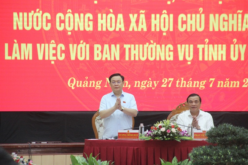 Chủ tịch Quốc hội Vương Đình Huệ làm việc với Ban Thường vụ Tỉnh ủy Quảng Nam