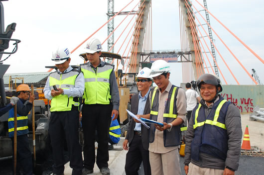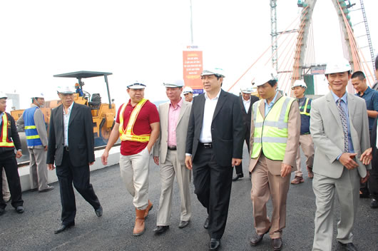 Như vậy, ngay sau khi hợp long thành công cầu tầng 2 của dự án, chủ đầu tư vẫn duy trì khí thế lao động sản xuất 3 ca trong suốt những ngày nghỉ Tết. Đặc biệt, sáng Mồng 2 Tết, trong lễ ra quân đầu năm, cùng với các đơn vị khác, Cty Cổ phần Đầu tư-Xây dựng Toàn Trung đã tổ chức ra quân trước sự chứng kiến của lãnh đạo thành phố để tiến hành công việc thuộc hạng mục thảm bê tông nhựa cầu dẫn 2 đầu công trình. Ông Nguyễn Ngọc Anh, Phó Giám đốc Cty này cho biết, trong ngày Mồng 1 Tết, đơn vị đã tiến hành thảm bê tông nhựa cầu dẫn phía Bắc đường Điện Biên Phủ và trong ngày Mồng 2 Tết tiếp tục thảm bê tông nhựa mặt cầu dẫn phía Nam đường Điện Biên Phủ.