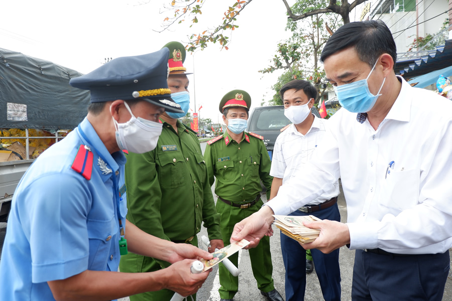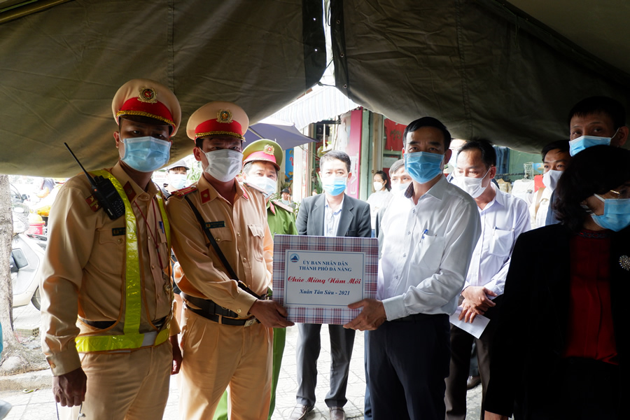 Nhân dịp Xuân về tết đến, thay mặt lãnh đạo TP, Chủ tịch UBND TP tặng quà và lì xì năm mới cho các lực lượng trực tại chốt kiểm soát dịch; đồng thời gửi lời chúc mừng năm mới an khang, mạnh khỏe đến gia đình của lực lượng liên ngành, chúc các cán bộ chiến sĩ hoàn thành xuất sắc nhiệm vụ được giao, đảm bảo an toàn cho TP để người dân yên tâm đón Tết Nguyên đán Tân Sửu.