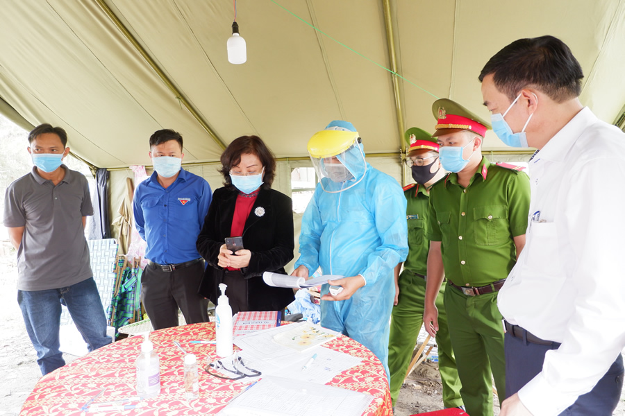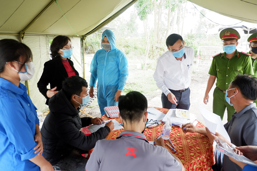 Chủ tịch UBND TP Lê Trung Chinh cùng lãnh đạo ngành Y tế thăm, động viên, tặng quà Tết và kiểm tra công tác phòng chống dịch tại Chốt Bồ Bồ. |