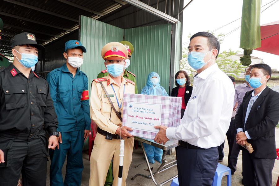 Chủ tịch UBND TP Đà Nẵng thăm, động viên, tặng quà Tết lực lượng liên ngành tại các chốt kiểm soát dịch