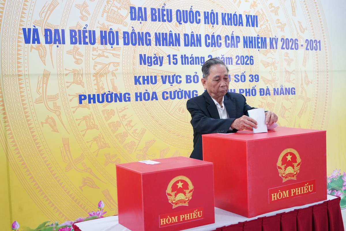 Trong không khí phấn khởi của Ngày hội toàn dân tham gia bầu cử đại biểu Quốc hội khóa XVI và đại biểu HĐND các cấp nhiệm kỳ 2026–2031, sáng 15-3, Chủ tịch Ủy ban MTTQ Việt Nam thành phố Đà Nẵng Lê Trí Thanh dự lễ khai mạc và tham gia bỏ phiếu tại Khu vực bỏ phiếu số 39, phường Hòa Cường.