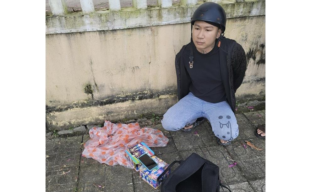 Tiến hành kiểm tra, lực lượng Công an phát hiện bên trong túi xách chứa 2 hộp pháo nổ với tổng khối lượng là 3,4kg. Qua làm việc, Hậu khai nhận đây là loại pháo nổ do Thái Lan sản xuất, được đối tượng mua trên mạng xã hội về bán lại lấy lời. Trong lúc chờ giao dịch mua bán với một đối tượng khác trên địa bàn TP Tam Kỳ thì bị Công an phát hiện, bắt giữ.
