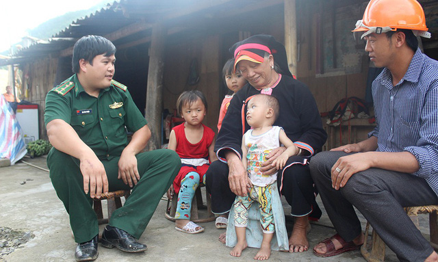 Lính biên phòng Lai Châu: '3 bám, 4 cùng' ở bản là phương châm mà những người lính đồn biên phòng Ma Lù Thàng (xã Ma Ly Pho, huyện Phong Thổ, Lai Châu) thực hiện. - trung úy Vùi Văn Thuận đến thăm một gia đình người dân bản Hùng Pèng - nơi tổ công tác biên phòng đang cắm bản - Ảnh: MY LĂNG |
