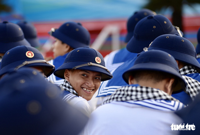Sáng 21-2-2019, hơn 4.000 thanh niên TP.HCM lên đường nhập ngũ. Khăn rằn, mũ cối, áo chiến sĩ hải quân, những chàng trai tuổi đôi mươi lên đường bảo vệ biển đảo quê hương - Ảnh: TỰ TRUNG |