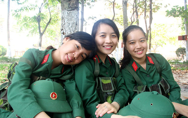 Ngô Huyền Anh Thư (24 tuổi, ngụ quận 12, TP.HCM) là một trong năm nữ công dân của TP.HCM nhập ngũ năm 2017. Trước khi lên đường nhập ngũ, Anh Thư đã tốt nghiệp Trường trung cấp Quân y (hệ dân sự). Vì mê màu áo lính, sau hai năm đi làm, Thư đã xung phong đi nghĩa vụ quân sự để được cống hiến, rèn luyện trong môi trường quân ngũ. - Ngô Huyền Anh Thư (bìa phải) cùng đồng đội trong giờ giải lao tại thao trường (ảnh chụp năm 2017) - Ảnh: DUYÊN PHAN |