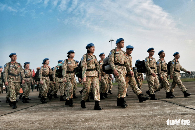 Đầu tháng 6-2014, lần đầu tiên Việt Nam cử hai sĩ quan quân đội lên đường sang Nam Sudan tham gia lực lượng GGHB của Liên Hiệp Quốc tại Phái bộ Nam Sudan. Đến nay, Việt Nam đã cử nhiều sĩ quan đi theo hình thức cá nhân và một đội hình cấp đơn vị là Bệnh viện dã chiến - Các chiến sĩ quân y lên đường tham gia gìn giữ hòa bình ở Nam Sudan - Ảnh: MAI THƯƠNG |