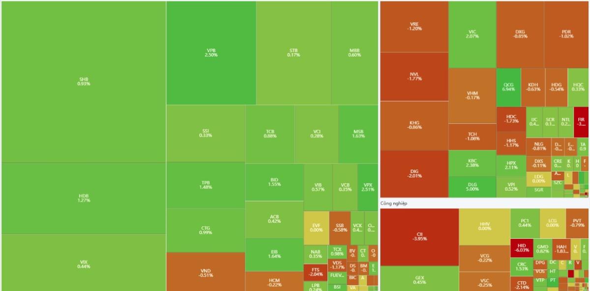 Thị trường Chứng khoán Việt Nam (VN-Index) trải qua phiên giao dịch với nhiều cảm xúc khi thị trường có lúc rung lắc mạnh, nhưng cái kết ngọt ngào khiến chỉ số chung tăng hơn 12 điểm cùng sắc xanh lan tỏa.