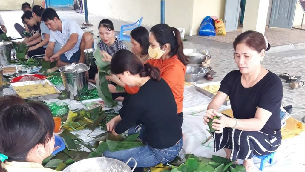 Trường Tiểu học Trưng Nữ Vương gói “bánh chưng nghĩa tình”. |