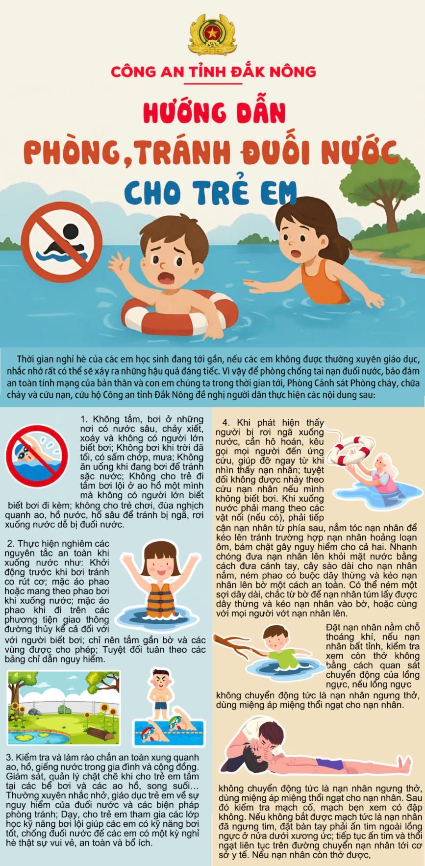 Theo thống kế của Phòng Cảnh sát Phòng cháy, chữa cháy và cứu nạn, cứu hộ Công an tỉnh Đắk Nông, từ đầu năm 2025 đến nay, trên địa bàn tỉnh đã xảy ra 16 vụ đuối nước (trong đó 5 vụ đuối nước có nạn nhân là người lớn, 11 vụ đuối nước có nạn nhân là trẻ em), làm chết 19 người. Riêng từ ngày 1/4 đến ngày 5/5 trên địa bàn tỉnh Đắk Nông liên tiếp xảy ra 9 vụ đuối nước (trong đó 7 vụ đuối nước có nạn nhân là trẻ em).
