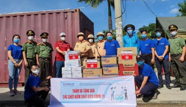 Chiều ngày 27-7, Phòng Thanh tra, Công an TP Đà Nẵng phối hợp với Công ty Cổ phần Dịch vụ Hàng không Taseco Đà Nẵng, Công ty TNHH MTV Taseco Oceanview Đà Nẵng đã đến thăm hỏi và tặng quà các chốt kiểm soát phòng, chống dịch COVID-19 trên địa bàn TP Đà Nẵng: Chốt kiểm soát đường Nguyễn Tất Thành nối dài- đường dẫn Hầm Hải Vân (H.Hòa Vang); chốt kiểm soát Quốc lộ 14B (Trạm CSGT Hòa Nhơn); chốt kiểm soát Km 941, Quốc lộ 1A (Trạm CSGT Hòa Phước); chốt kiểm soát Dự án tổ hợp du lịch và giải trí Cocobay (đường Trường Sa, Q.Ngũ Hành Sơn); chốt kiểm soát chân đèo Hải Vân (đầu vào, Q.Liên Chiểu). Theo đó, đoàn công tác đã trao tặng các chốt 50 thùng nước suối, 50 thùng cà phê, bánh các loại và 12.500 khẩu trang y tế kháng khuẩn. Tổng kinh phí gần 50 triệu đồng.