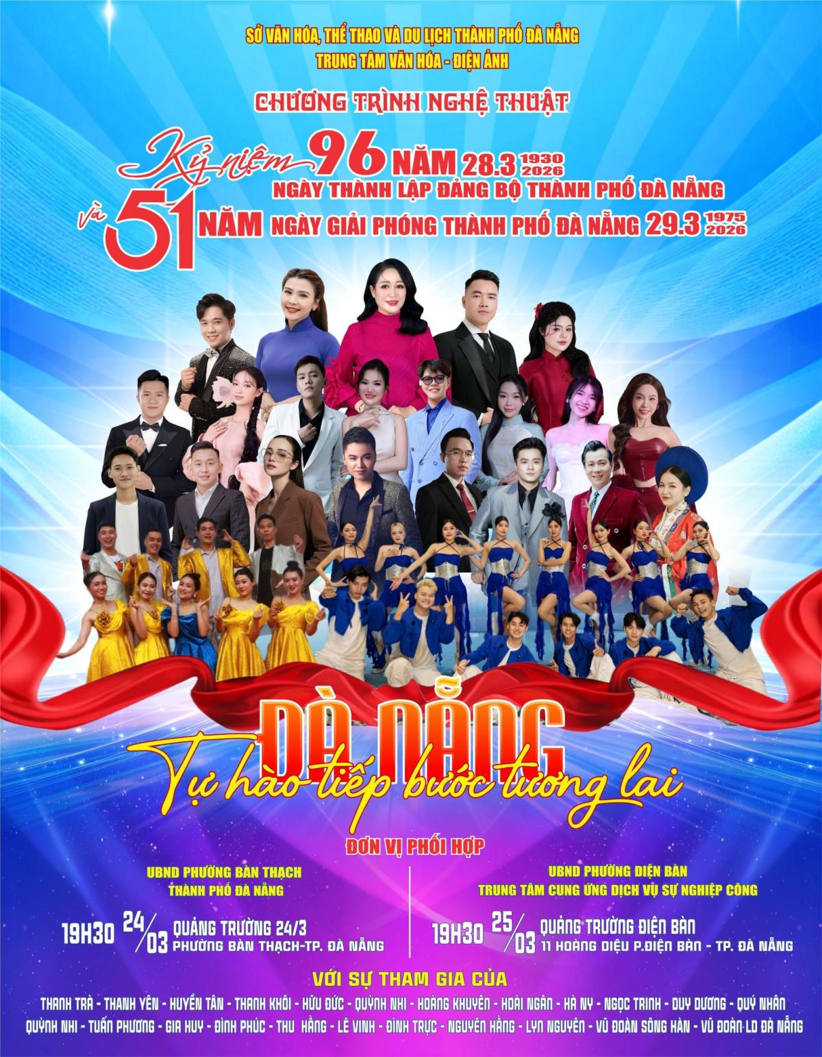 Tối 24-3, tại Quảng trường 24-3, phường Bàn Thạch, TP Đà Nẵng, Trung tâm Văn hóa - Điện ảnh TP Đà Nẵng tổ chức chương trình nghệ thuật với chủ đề "Đà Nẵng - Tự hào tiếp bước tương lai".