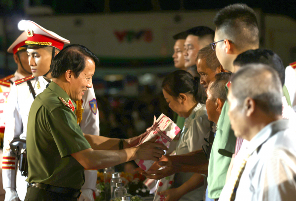 Nhân dịp này, Bộ trưởng Lương Tam Quang và các đại biểu đã trao các phần quà tặng các gia đình chính sách trong CAND.