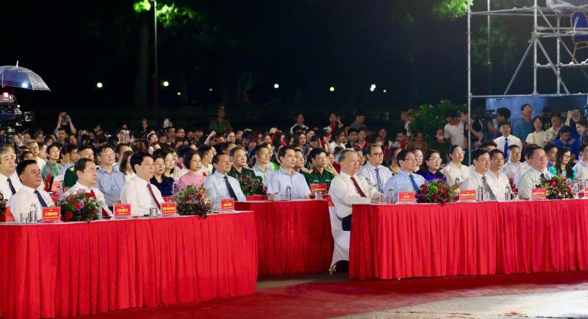 Các đồng chí: Tổng Bí thư Tô Lâm, Chủ tịch nước Lương Cường, Thủ tướng Phạm Minh Chính, Chủ tịch Quốc hội Trần Thanh Mẫn, Thường trực Ban Bí thư Trung ương Đảng Trần Cẩm Tú đã đến dự chương trình.