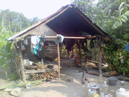 Căn chòi cũ nơi anh em Krih, Alếch và cháu Danh sống tách biệt ở trong rừng. |