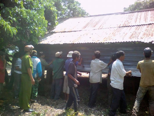 Người dân làng Tnùng 2 chung tay xây dựng căn nhà cho anh em Krih. |