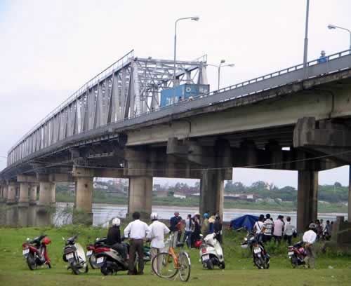 Cây cầu “tuyệt mệnh” - nỗi kinh hoàng của nhiều người có người thân nhảy cầu tự vẫn (trong ảnh là hàng trăm người đang đứng bên cầu Bến Thủy tìm xác em Nguyễn Thị Mỹ D. nhảy cầu tự vẫn vào tối 15-5). |