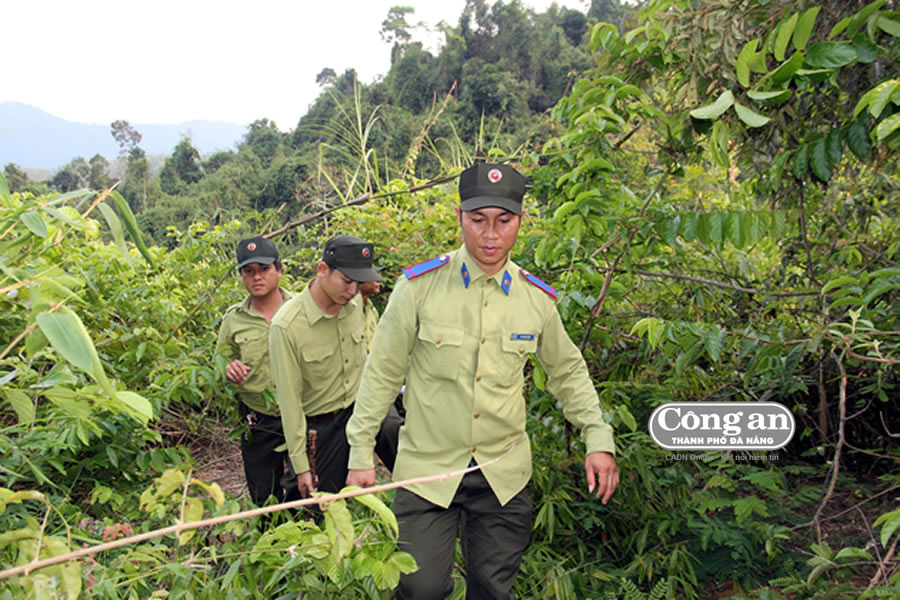 Cán bộ BQL KBT Voi Nông Sơn tuần tra, kiểm soát khu vực voi sinh sống. |
