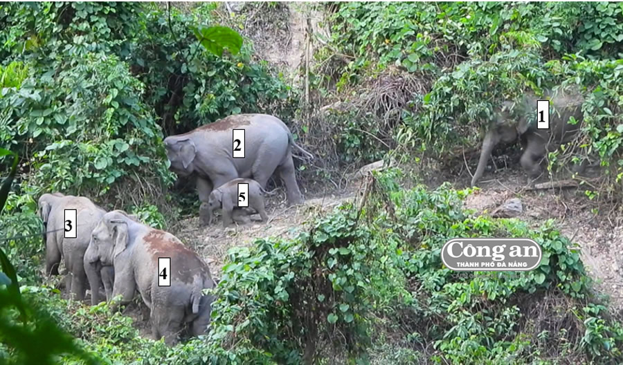 Quần thể voi có cả voi con vừa được phát hiện ở Nông Sơn. |