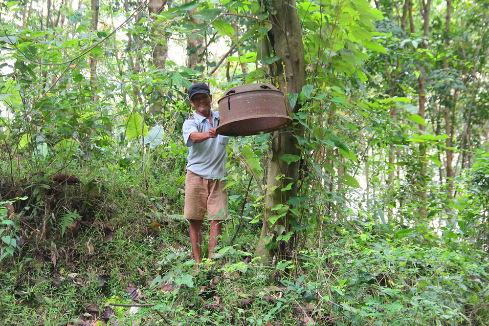 BQL KBT voi trang bị 1 chiếc kẻng để ông Bình kịp thời báo động khi đàn voi rừng “xuống núi”. |