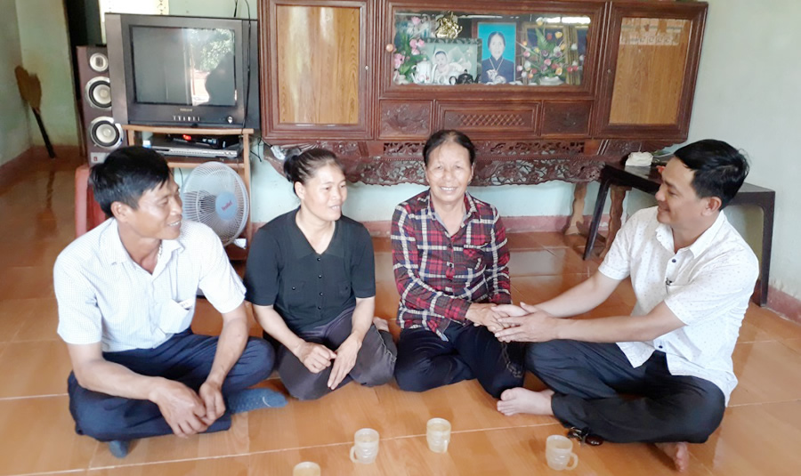 | Lãnh đạo UBND xã đến thăm hỏi các gia đình ở "xóm không chồng". |
