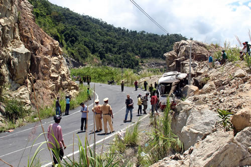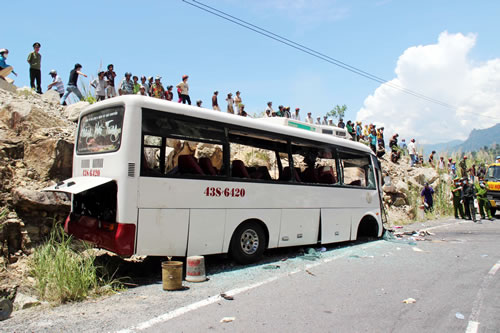 (Cadn.com.vn) - Vào lúc 9 giờ 15 ngày 7-6, tại Km 44+700 trên tuyến đường Nha Trang – Đà Lạt thuộc địa phận thôn Bố Lang, xã Sơn Thái (H. Khánh Vĩnh, Khánh Hòa), chiếc xe khách BKS 43S- 6420 chở đoàn giáo viên của Trường tiểu học số 2 Hòa Phước (H. Hòa Vang, TP Đà Nẵng) cùng thân nhân trên đường đi tham quan trở về đã gặp nạn thảm khốc. Vụ tai nạn làm 7 người chết, 22 người bị thương.