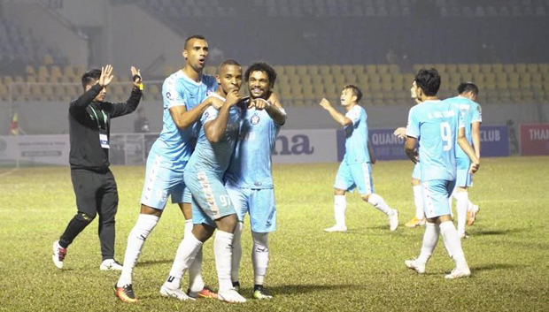 Câu lạc bộ SHB Đà Nẵng thi đấu trên sân Cẩm Phả tại Quảng Ninh ngày 24-1 tại vòng 2 V-League 2021. |