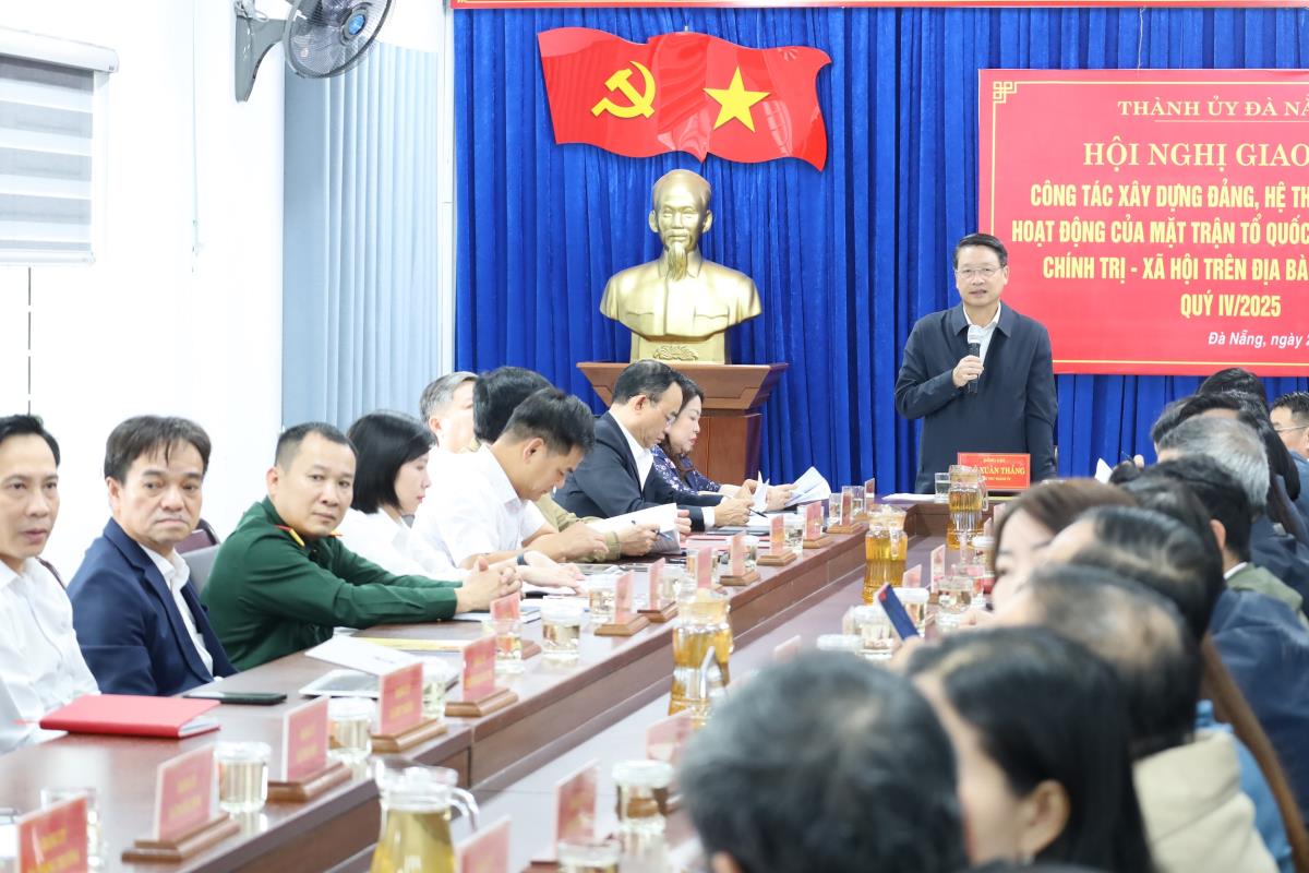 Chiều 28-11, tại phường Bàn Thạch, Thành ủy Đà Nẵng tổ chức Hội nghị giao ban cụm các cơ quan, địa phương khu vực phía Nam thành phố về công tác xây dựng Đảng, hệ thống chính trị và hoạt động của Mặt trận Tổ quốc, các tổ chức chính trị - xã hội quý IV/2025. Hội nghị được tổ chức trực tiếp tại đầu cầu phường Bàn Thạch và được trực tuyến tại các địa phương khác trên địa bàn phía Nam thành phố. Phó Bí thư Thành ủy Đà Nẵng Ngô Xuân Thắng chủ trì hội nghị.