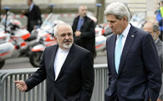 Ngoại trưởng Mỹ John Kerry (phải) và người đồng cấp Iran Mohammad Zarif đang nỗ lực để các bên đi đến một thỏa thuận hạt nhân bước ngoặt. Ảnh: Wochit |